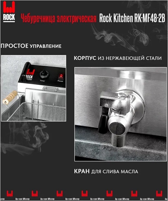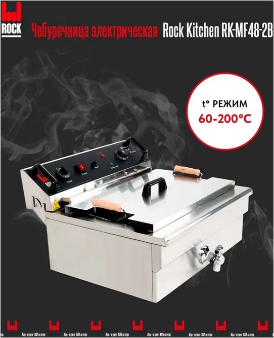Электрическая чебуречница ROCK KITCHEN RK-MF48-2B предназначена для обжарки во фритюре чебуреков, беляшей, пирожков и других продуктов. Оснащена удобным в использовании терморегулятором, позволяющим точно настроить необходимую температуру приготовления, одним резервуаром и краном для слива масла.