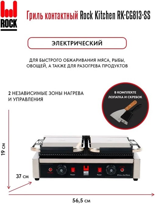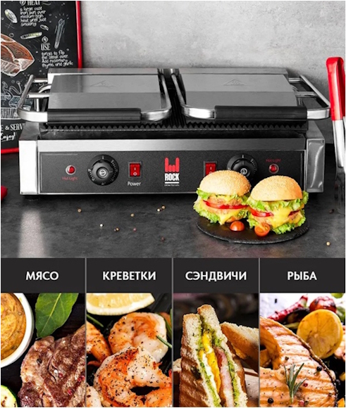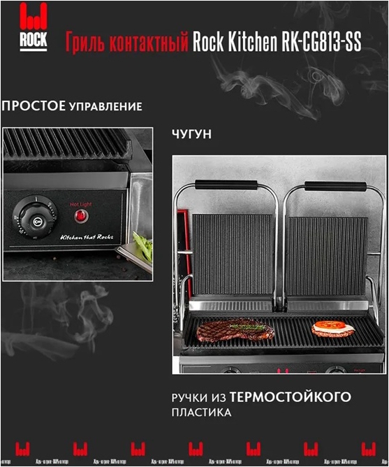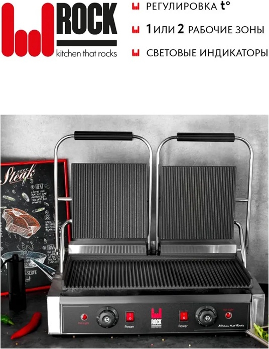 Контактный гриль ROCK KITCHEN RK-CG813-SS предназначен для быстрого обжаривания мяса, птицы, стейков, рыбы, овощей, а также для разогрева продуктов. Благодаря одновременному воздействию рабочих поверхностей продукт обжаривается равномерно с двух сторон, а время приготовления сводится к минимуму. Оснащён двумя терморегуляторами. Рабочие поверхности изготовлены из чугуна и имеют антипригарное покрытие.