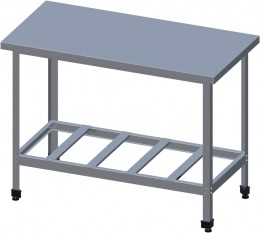 Производственные разделочные столы VIATTO состоят из прочного каркаса, столешницы с подложкой из ламинированного ДСП и ножек. Большинство моделей также оснащено полкой (сплошной или решёткой), на которой удобно хранить посуду и другой кухонный инвентарь. Часть представленных моделей оснащена бортом. Ножки можно отрегулировать по высоте, благодаря чему разделочный стол будет надёжно стоять даже на неровном полу.