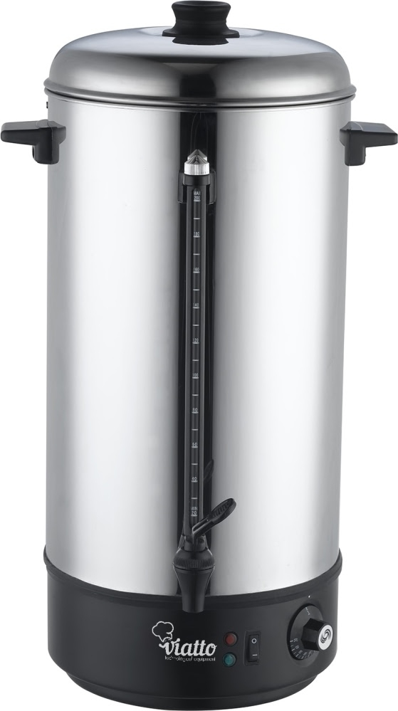 Наливной кипятильник VIATTO MK-WB20 предназначен для нагрева и кипячения воды, а также поддержания её в горячем состоянии. Оснащён терморегулятором, закрытым ТЭНом и одинарными стенками. Есть мерное стекло, позволяющее отслеживать уровень воды. Благодаря удобным ручкам оборудование можно легко переносить. Корпус изготовлен из нержавеющей стали и пластика.