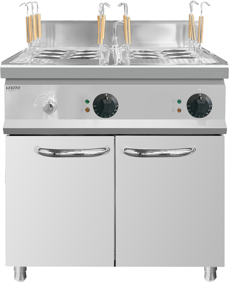 Макароноварка VIATTO MK-EPC7C402 предназначена для варки макаронных изделий, пельменей, вареников, круп, яиц и других продуктов. Для слива предусмотрен сливной механизм. Оснащена терморегулятором, позволяющим точно настроить необходимую температуру приготовления внутри ванны. В нижней секции имеется дренажный клапан.