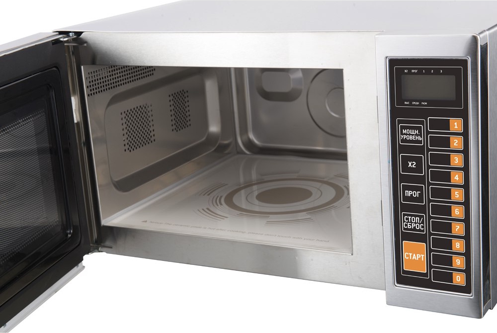 - Цифровой дисплей с отображением времени приготовления, мощности, режима работы