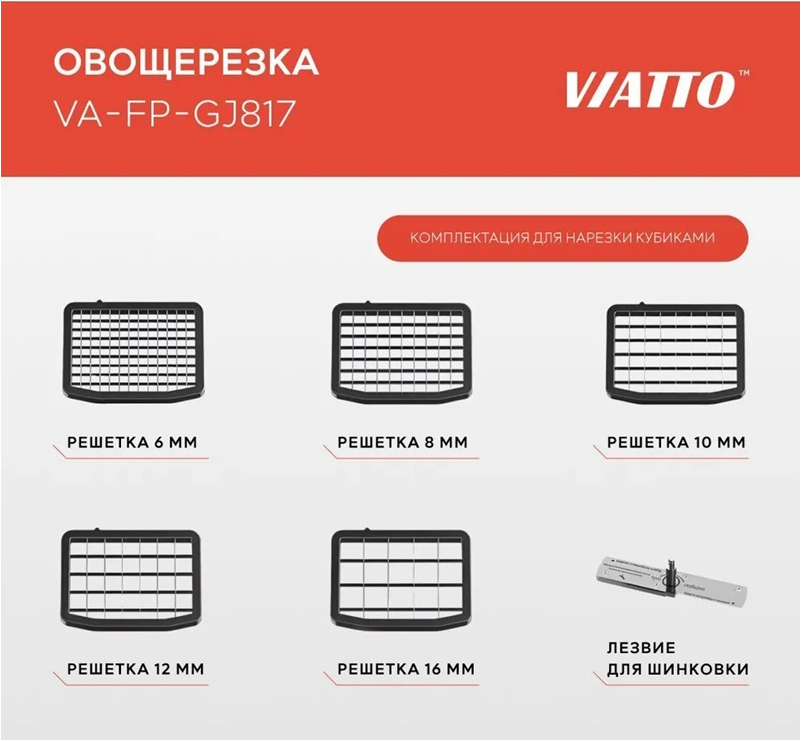- Решётки для нарезки кубиками размеров 6, 8, 10, 12, 16 мм